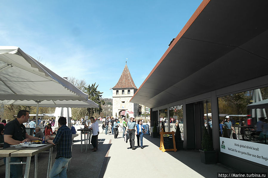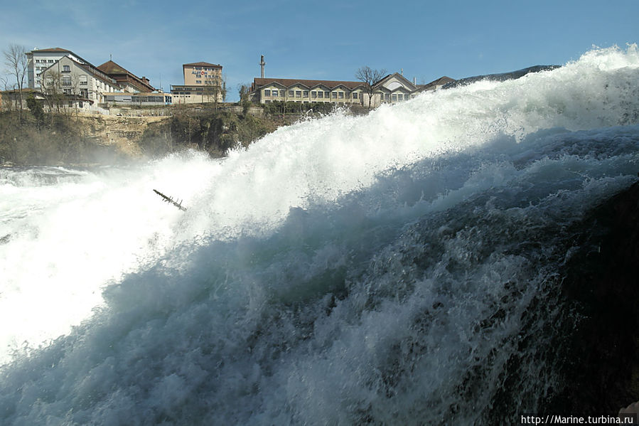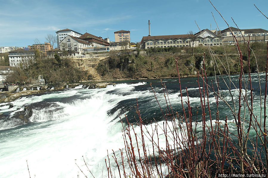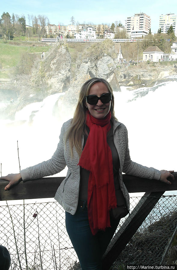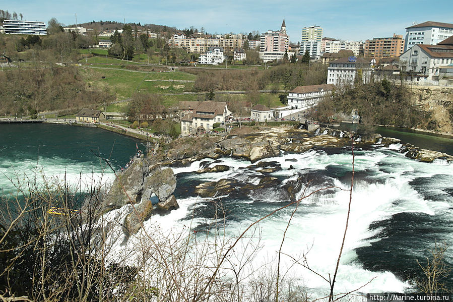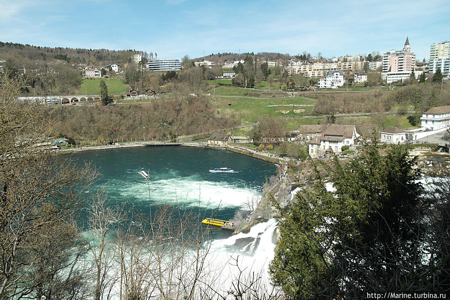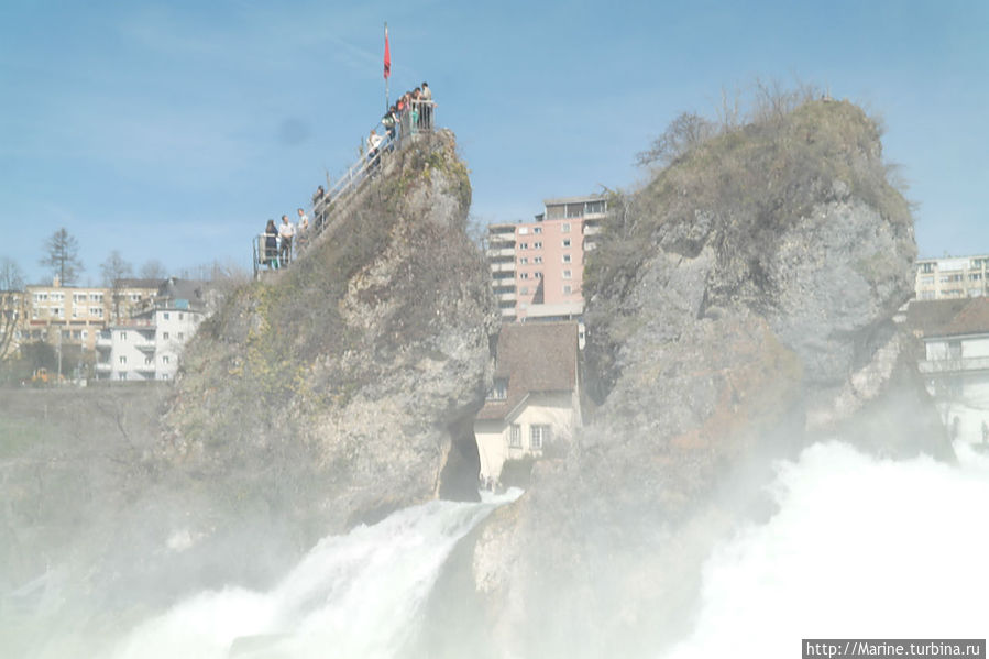 Если хочется насладиться водопадом поближе — можно прокатиться на кораблике. Кораблик ходит каждые 10 минут. Стоимость примерно 5-7 франков.