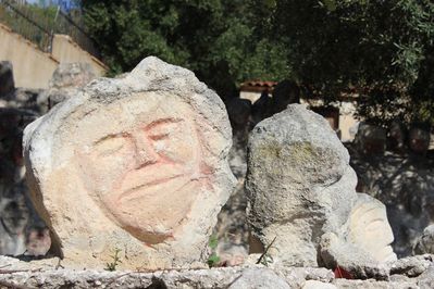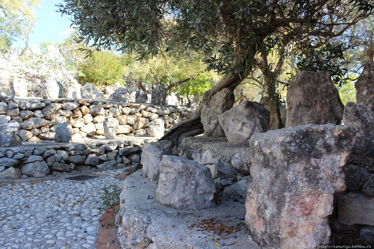 Что конкретно хотел нам сказать автор, прекращая камни в лица и наполняя ими все пространство вокруг, узнать доподлинно теперь невозможно. Но "настругал" он своих творений столько, что кажется — идешь, идешь по саду, а "башки" все не кончаются.