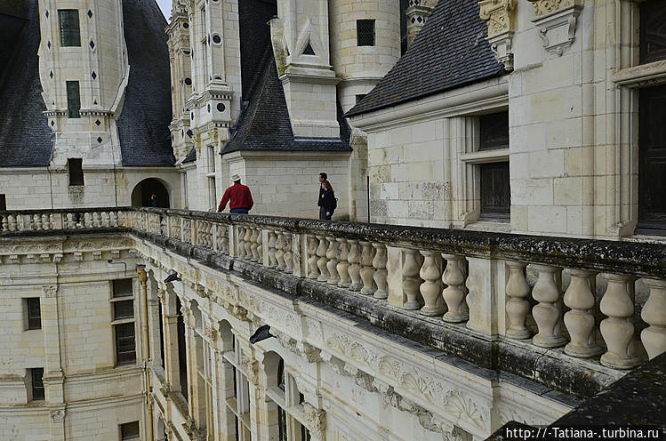 Шамбор прекрасен. И внутри и снаружи. И история его очень насыщена. Пересказывать её в тысячный раз не хочу. Фотографий я там сделала огромное количество, и долго думала, что же показать. Надумала, что постараюсь выбрать те детали, которые либо действительно сохранились с тех времен (горшочки и кувшинчики со сколами и трещинами), либо передают настроение (на мой взгляд, конечно). Могла бы помучить каминами. Их там огромное количество. Сын так этому обстоятельству восхитился, что сфотографировал, если и не все, то больше половины точно. Ну и конечно, лестницы: самая известная (двойная) расположена в центральной части. Шамбор замок большой и с большим количеством деталей. При этом ощущение пространства там прекрасное, и ничего не кажется много. А на крыше можно вообще надолго зависнуть. Но нам не повезло с погодой (дождь и холодно). Думали, что надо будет сдавать рюкзак в камеру хранения, а оказалось, что в этом нет необходимости. Видели много детских школьных экскурсий. Уж не знаю почему, может потому что вход для детей бесплатный. Ценообразование во Франции меня вообще удивило)). Парк огромный, но мы туда не пошли, опять же по причине очень скверной погоды. Буклет на русском языке дают. Для ориентирования в помещении – он вполне удобен. Информации мало, а что-где понятно. Поэтому для понимания значимости замка лучше начитайтесь историй заранее, так будет интересней. Этих историй на разных сайтах большое количество. Аудио гида можно взять.