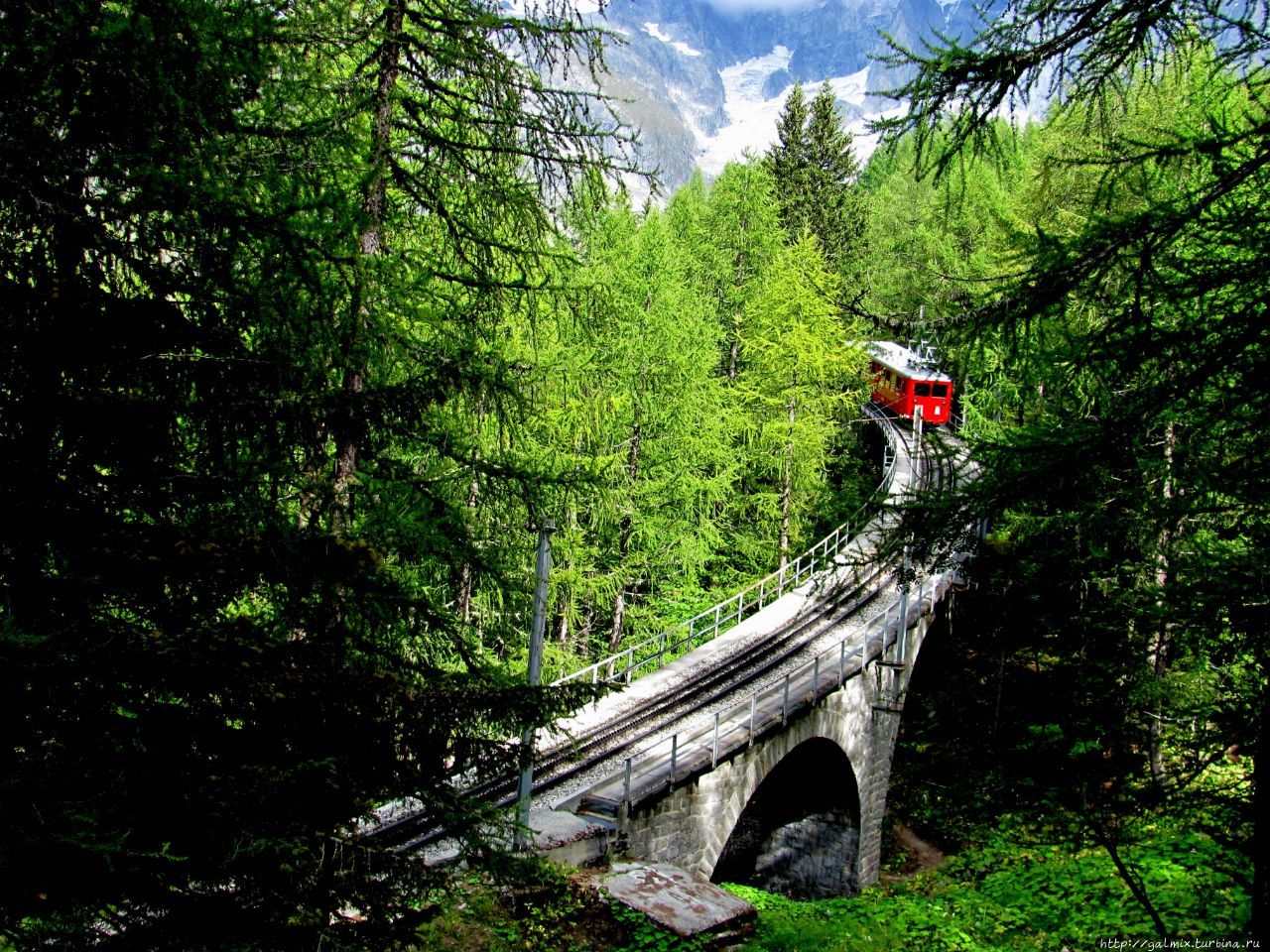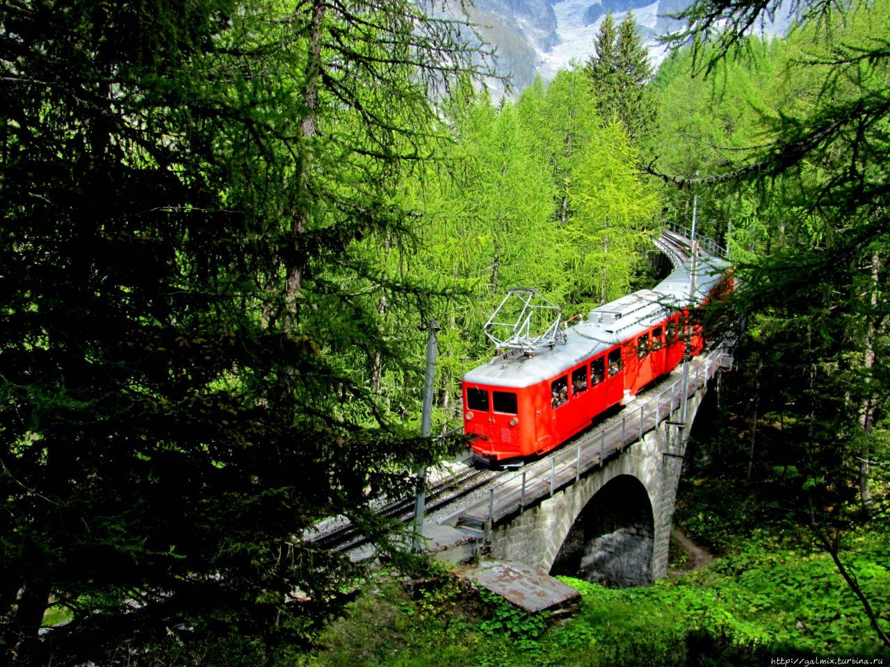 Однажды прошлись пешком от станции Монтенвера до Шамони. Перепад высот 900м. Тропа начинается у Глоссария и идет иногда пересекаясь с рельсами и переходя их.