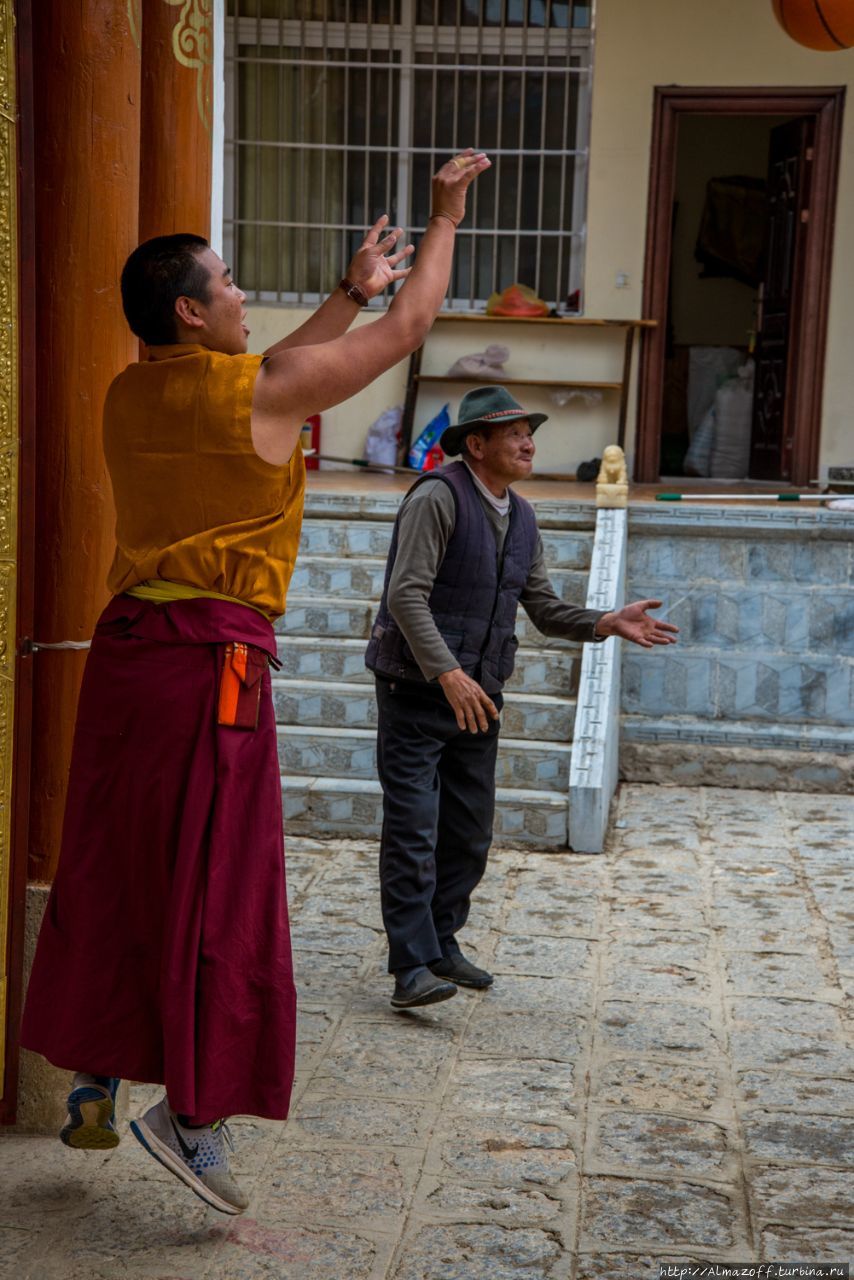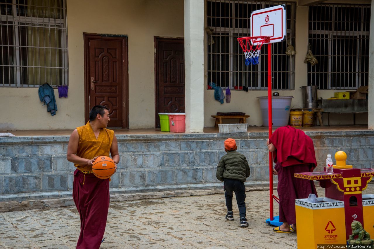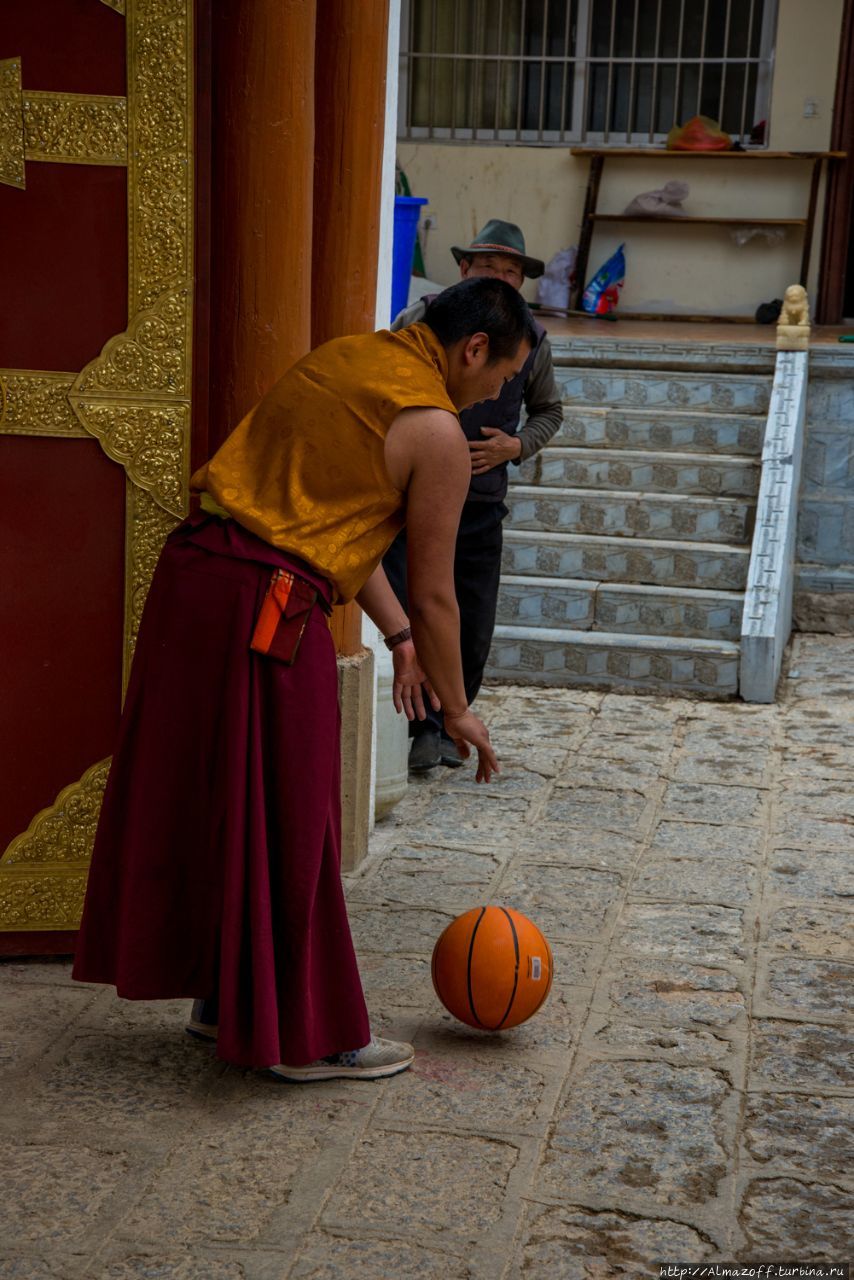 Во дворе храма монахи играют в баскетбол, на меня не обращает никакого внимания.