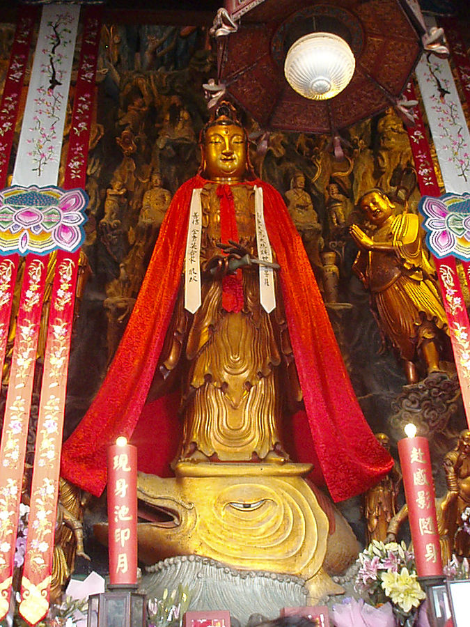 В главном павильоне находится основная святыня храма 2-х метровая статуя
