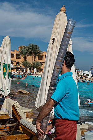 К другим приметам наступления новой эпохи в Египте можно отнести заметное похужение сервиса в отелях. Заметное, если вы уже здесь бывали и помните, как было раньше. Сегодня же вам придется даже в олинклюзиве мириться с довольно холодным или равнодушным отношением персонала. У вас уберутся, вам дадут поесть, но как-то через силу, натужно. И традиционный для Египта бакшиш, как я заметил, не сильно меняет отношение к вам обслуги. Тут еще до кучи усиливает негатив чисто восточная привычка «приватизировать» любой участок работы, который тебе доверили – будь то уборка туалета или готовка и раздача гриля на обеде и ужине. Да, человек положит тебе кусочек, если попросишь. Но сделает это сегодня как одолжение и с видом, как будто ты изо дня в день объедаешь его семью…