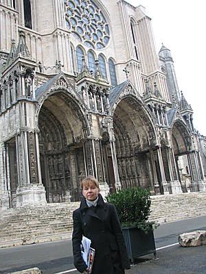 Наконец то пробил час открытия и мы попали в собор. На месте современного Шартрского собора издавна стояли церкви. С 876 года в Шартре хранится Святая плащаница Девы Марии. Вместо первого кафедрального собора, сгоревшего в 1020 году, был возведён романский собор с огромной криптой. Он пережил пожар 1134 года, разрушивший практически весь город, но сильно пострадал во время пожара 10 июня 1194 года. От этого пожара, занявшегося от удара молнии, уцелели только башни с западным фасадом и крипта. Чудесное спасение от огня священной плащаницы было сочтено знамением свыше и послужило поводом для строительства нового, ещё более грандиозного, здания.