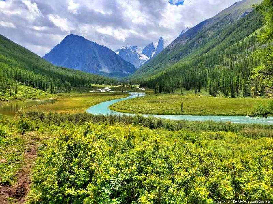Путь к озёрам проходит через удивительно живописные места тайги, медленно поднимаясь всё выше, к степям и сочным цветущим альпийским лугам. Вот теперь понятно отчего алтайский мёд такой вкусный и ароматный! Цепочка Шавлинских озёр доходит до ледника, из него берут начало все шесть водоёмов — они разного размера и очертаний, следуют друг за другом ступенями или каскадом к заснеженным пикам с звучными названиями: Мечта, Сказка, Красавица.
