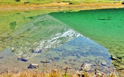 Нижний водоём самый фотогеничный и интернет заполнен всевозможными его изображениями, одно живописнее другого. Вода в Нижнем озере, как и в других, отличается удивительным молочно-бирюзовым цветом, но площадь озёрной чаши значительно больше остальных. Это горное озеро имеет ледниковую природу, оно никогда не нагревается до комфорта летнего купания, а верный признак холодной и чистой воды — рыба хариус, которая здесь водится.