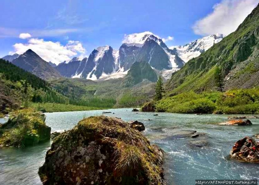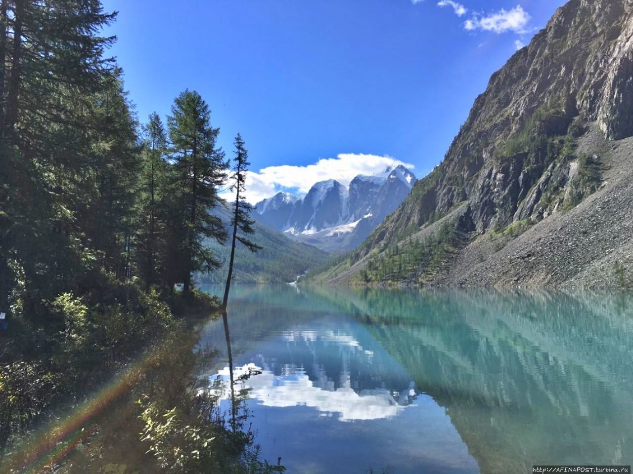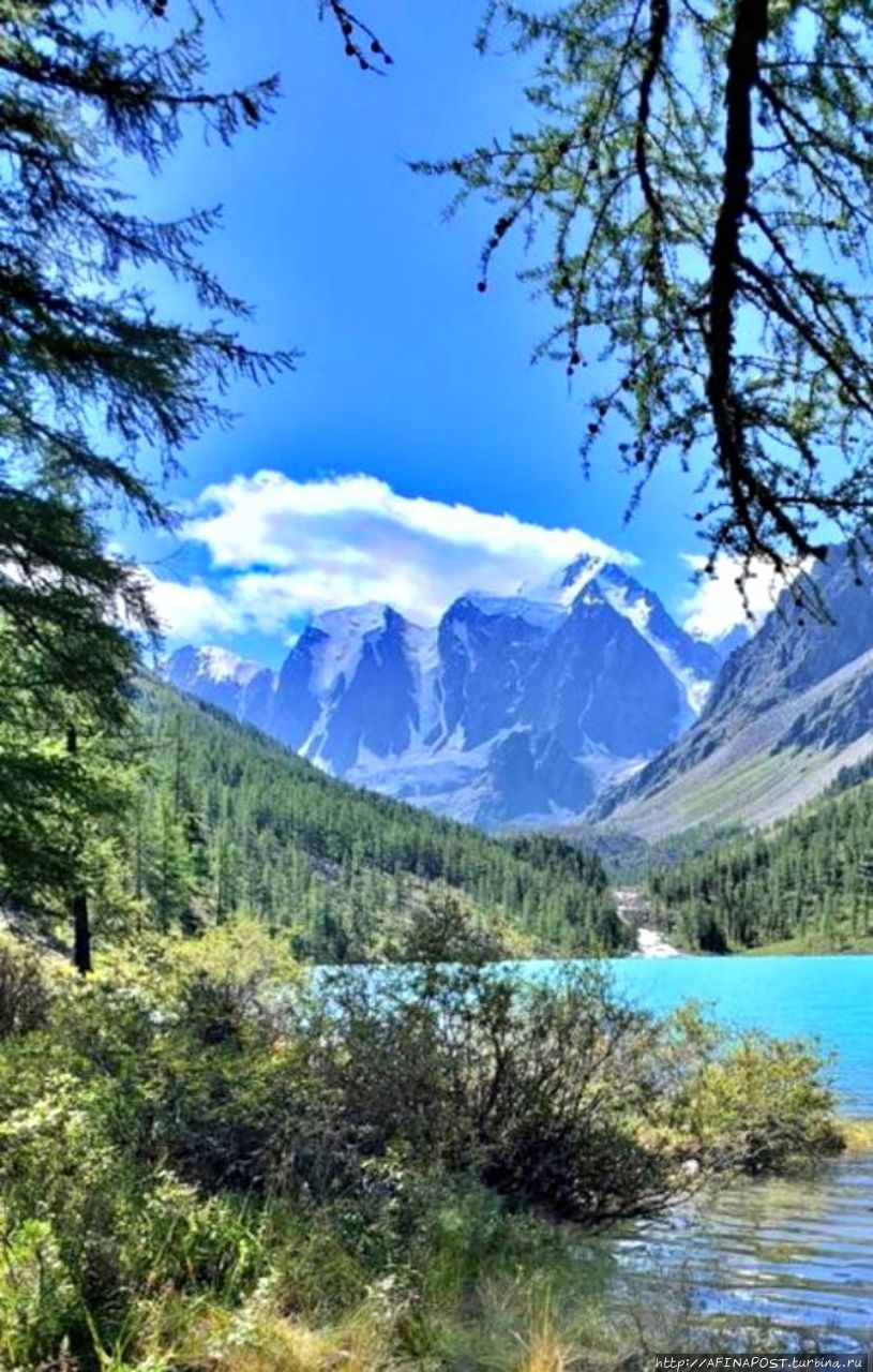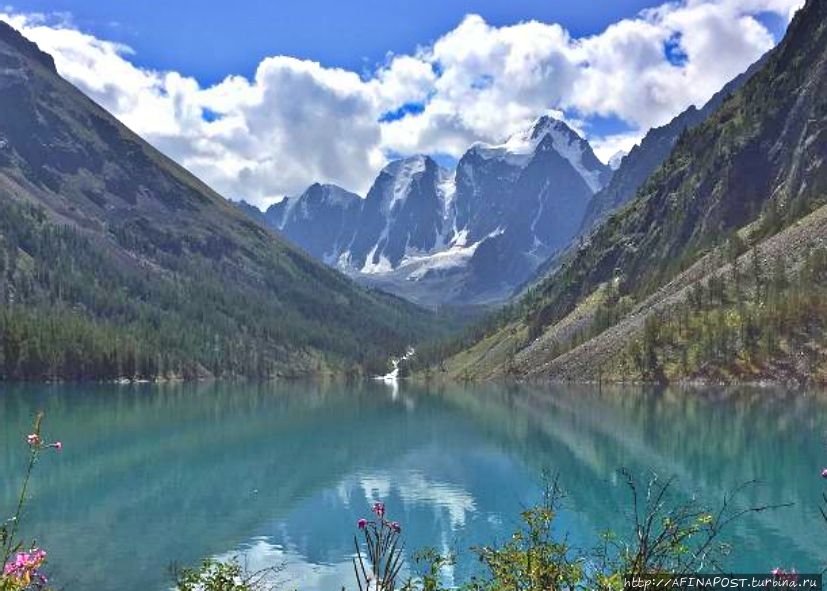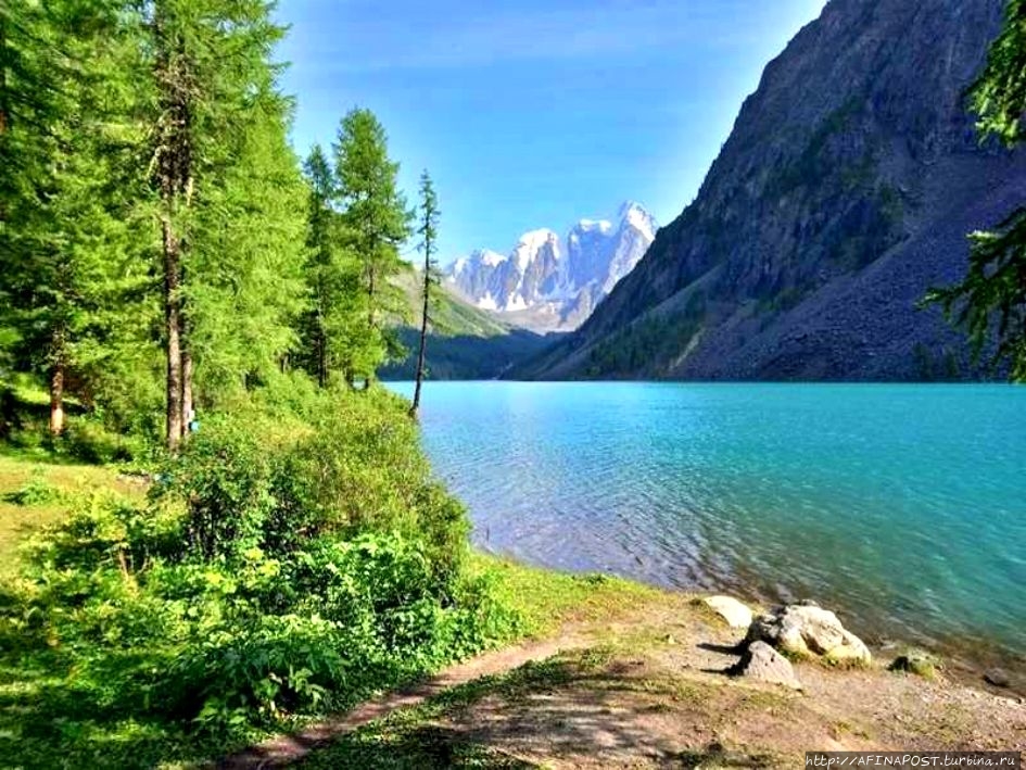 Окружающие склоны, поднимающиеся над зеркалом, образуют своеобразные кулисы или раму. Между ними, как фантастические декорации, выступают знаменитые вершины Северо-Чуйского хребта — Мечта, Красавица, Сказка. Интересно, что такие романтичные названия дали пикам не местные жители, а ученые с мировым именем — Делоне и Тамм. Известные математик и физик увлекались альпинизмом, совершали подъёмы в России и других странах, но эти вершины Горного Алтая они считали самыми прекрасными из всех, увиденных ими.