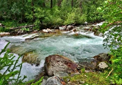 На перевале Орой есть небольшая хижина алтайцев, где можно купить свежие лепёшки, молоко, козий сыр, кумыс. Спускаемся вниз, сброс высоты 200 метров, переходим вброд небольшую речку и идём вдоль реки Шабага. Идём к переправе через бурную речку Ильгустан, левый приток Шабаги, там разбиваем лагерь на ночлег.