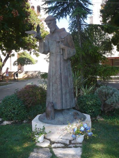 В сквере также установлен памятник святому Франьо с надписью «Молись за нас».