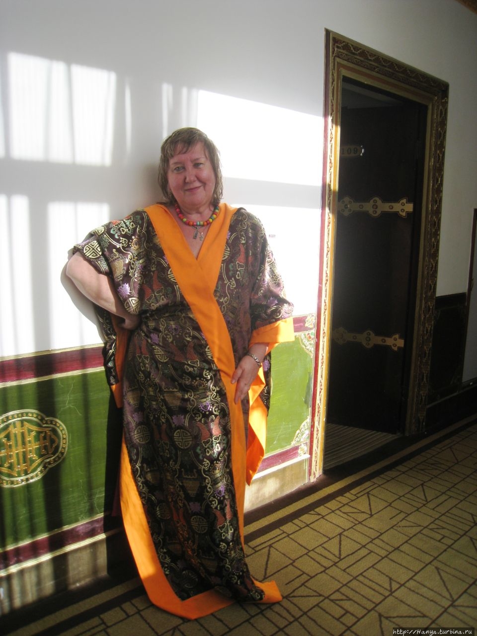 Кровати заправлены красивыми шелковыми покрывалами, которые мы вечером использовали как драпировку для фотосессии. Вышло смешно, и мы изощрялись в этом действии, фотографируя друг друга в коридоре отеля.
