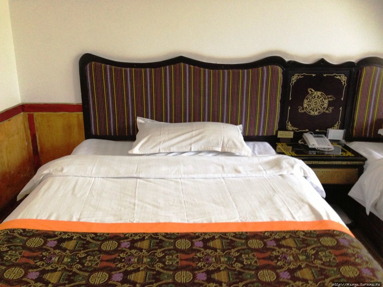 В отеле все узнаваемо китайское с их тумбочкой-пультом для включения света, телевизора, и обогрева. В номере холодно, но это не странно, ведь высота уже 3600 над уровнем моря. Здесь даже вода кипит при меньшей, чем 100 градусов, температуре. В номере есть фен, чайник, зубная щетка – в общем, везде Китай со своим самоваром наступает на Тибет. И это не плохо или хорошо, просто это реалии сегодняшнего дня.