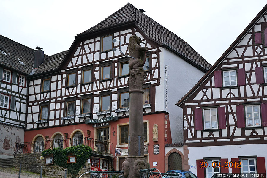 Имени этого городка и заметок о нем нет на сайте,настолько он мал.Но десятки тысяч приезжают ежегодно посмотреть на аккуратные домики -настоящее царство Фахверка.В городке Schiltach, который расположен на месте впадения в Кинциг реки Шилтах, где живёт всего 4 тысячи жителей.К тому же здесь есть музей,рассказывающий о повседневной жизни сплавщиков леса.В старину самым традиционным и прибыльным занятием местных жителей считался сплав леса вниз по Рейну, аж до самых голландских верфей.