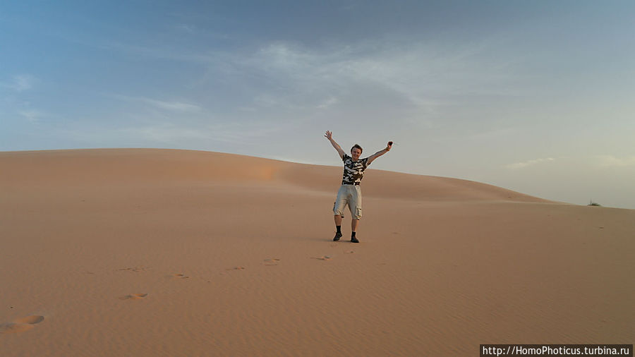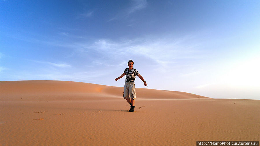 Но — обалденная пустыня, которая окружает, по крайней мере в эти часы не давала задуматься о бренности всего, творимого человеком в расчете на вечность, а держащееся всего несколько веков в лучшем случае. Как же здорово на закатном ветру идти по барханам, чувствовать, как песчинки укалывают голени, а ноги то проваливаются в песок с подветренной стороны, то упираются как в камень — со стороны наветренной, а цепочка следов, образованная тобой, через пару минут уже занесена песком и пропала.