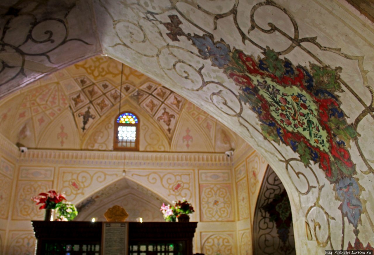Если верить карте Гугл, это помещение Imamzadeh Jalal Al-Din, но кто конкретно был этот имам Джалал аль-Дин я отыскать не сумел. Это было очень популярное имя для начала Средних веков, и поисковик выдает множество достойных людей с этим именем. А вот с прозвищем Zanjiri (которое написано на том самом указателе, благодаря которому я сюда попал) оказалось разобраться проще, и об этом я нашел целую историю (я напомню, что я зашел сюда один, потому спросить у экскурсовода ни о чем не мог, а потом просто забыл).
