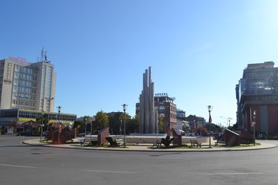 В середине площади находится абстрактный фонтан, который не работал на момент нашего появления в городе. Ну с этим мне постоянно "везёт" —