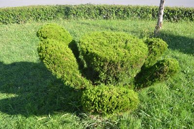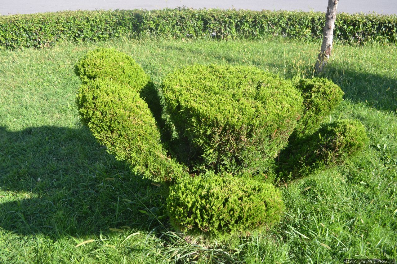 Абстрактный фонтан и хорошее название посчитали власти города -это гораздо лучше. На площади есть вот такие художественно обработанные кусты.