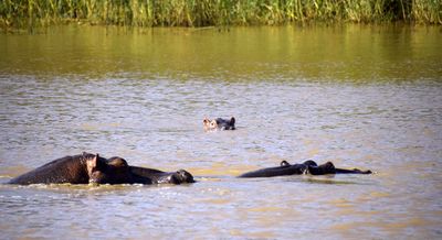 Мы находимся на территории национального парка в его водной части Имфолози. Здесь в озере, живут сотни бегемотов. Такую возможность мы не могли пропустить. Думаю, что водное сафари — довольно редкое явление, а сафари, посвященное бегемотам, возможно только в Африке. В нашем путешествии такая возможность появилась первый и последний раз.