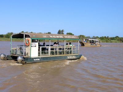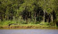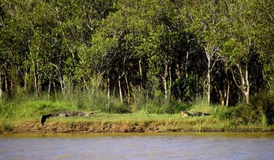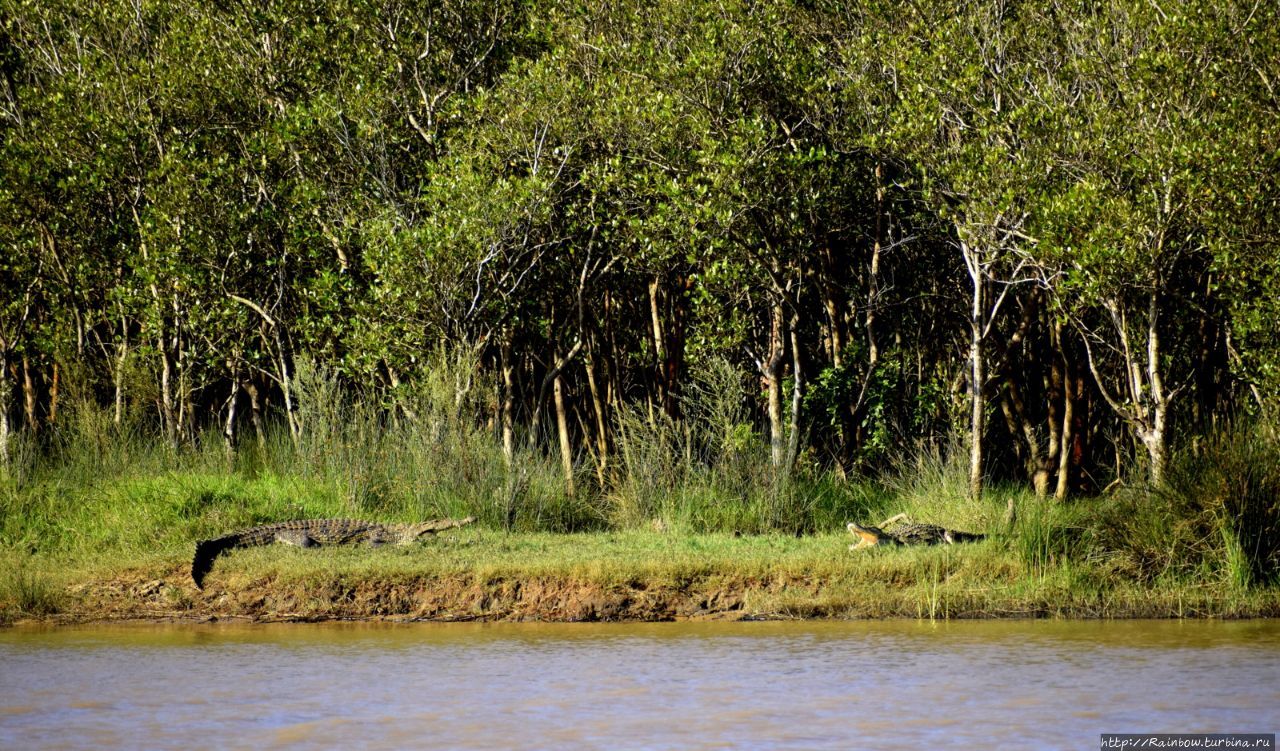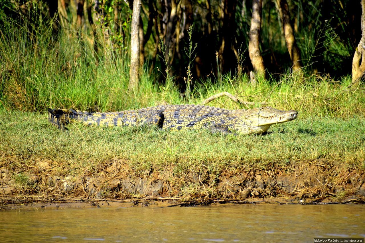 Но это водное сафари, не только бегемотовое. И кого еще можно увидеть? Вот там, на берегу, вы видите крокодилов?