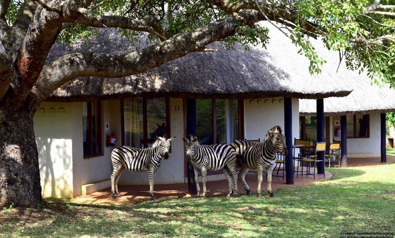 Гуляют тут свободно, намного ближе, чем в Свазиленде. Здесь они привыкли к людям, хотя дистанцию держат одинаково. Как говорится, хотели увидеть зебру? Пожалуйста! Хоть перед завтраком, хоть после.