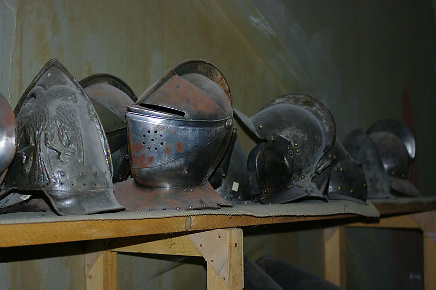 Второй и третий этажи – это настоящее, не отреставрированное лицо замка. Тут можно найти и склад шлемов, и останки в камине, сохранившиеся со времен расцвета Ренессанса. Причем все это никак не портит вид замка, скорей наоборот – наблюдая весь этот контраст, начинаешь задумываться о прошлом и времени. К тому же отсутствие толп туристов позволяет придаваться мечтательному настроению.