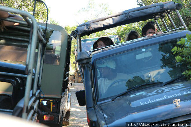 Кроме фауны и флоры мы увидели… огромное количество туристов на джипах, разъезжающих по дорогам национального парка в поисках диковинных животных. На узкой дороге даже образовалась пробка из 10-15 джипов из-за лежавшего в ветвях дерева леопарда. Так как это был тупик, то на месте дороги, где расположилась кошка, было двухстороннее столпотворение из джипов, ехавших в разные стороны по узкой колее. После этого эпизода, мы решили сваливать из этого зоопарка, где интереснее смотреть за людьми, чем за животными.