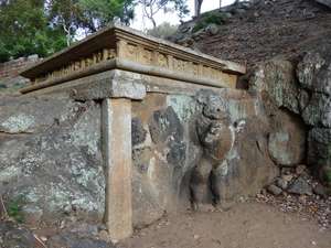 Начнем с простого по устройству, но очень "подходящему" Шри-Ланке: Бассейн Льва (Sinha Pokuna). Расположен он недалеко от Анурудхапуры на священной горе Махинтале. Вода подавалась из бассейна Кобры (находится выше) по желобу и стекала из пасти льва в небольшой резервуар.