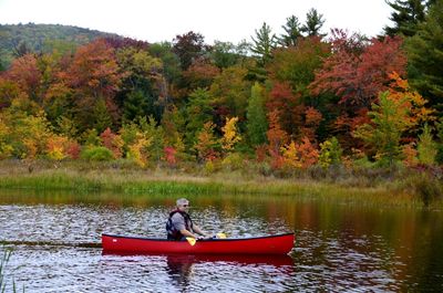 А во второй половине дня мы доехали к последней цели — Изумрудному озеру. Это парк штата, то есть кусочек дикой природы, находящейся во владении штата, но принадлежащей все людям, здесь есть возможность разных видов отдыха, как активного, так и пассивного, летом здесь приятно купаться, а осенью походить по лесным тропам или поплавать по озеру. За порядком следит парковая служба, на ночь парк закрывается, а днем можно взять лодку напрокат и насладиться тишиной и видами.