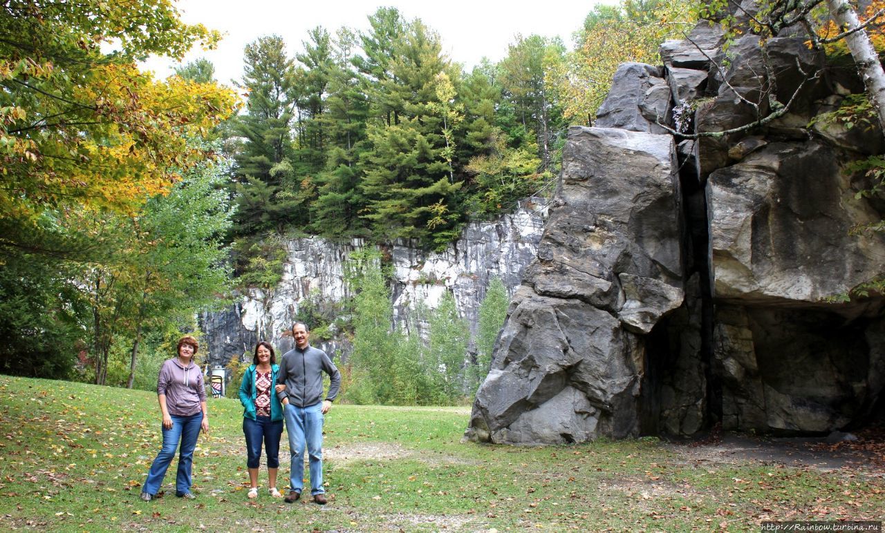 Так мы и начали наше мини путешествие по самому красивому уголку Новой Англии — без солнца. Бегло осмотрев наш город, все же не для этого приехали, мы отправились в мраморный рай, где водопад, природный мост и все стены из настоящего мрамора, абсолютно уникальное явление на целом континенте и при этом рядом с центром города. Паша с Галей были очень довольны Во-первых, это красиво, а во-вторых, первые впечатления всегда самые острые.