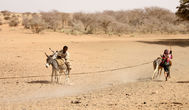 Затем несколько раз дергают его вверх вниз. Он намокает, раскрывается и заполняется водой. Далее одну веревку привязывают к другой, которая закреплена на осле. Дети гонят животное в сторону.