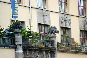 Напротив Лидерхалле находится Роберт-Бош-Ареал.В 1886 году Роберт Бош основал здесь мастерскую,которая стала основанием знаменитого концерна по производству электрических и электронных приборов.Конечно,от старого здания мало что осталось.В 90-х годах его полностью перестроили,но при этом оно не потеряло своего шарма.