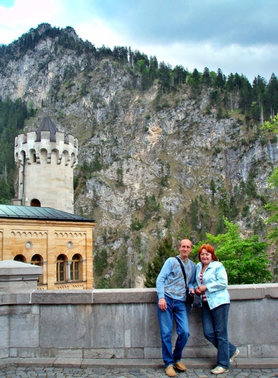 мы расположились отдохнуть на балконе шале и долго смотрели на замок баварского короля, который в сумерках стал похож на белого лебедя...