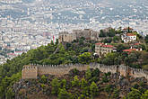 Крепость расположена на вершине холма, наш автобус ехал по узкой дороге, проложенной по самому краю обрыва. Каждый раз, когда неуклюжий автобус поворачивал на крутом изгибе серпантина, захватывало дух! “Не волнуйтесь, у нас за рулем опытный водитель!” – только и приходилось верить гиду на слово. Примерно на полпути, когда мы поднялись уже достаточно высоко, передо мной вдруг как на ладони открылся великолепный вид на Аланью и Средиземное море. Но сфотографировать его было нереально, разве только на ходу через окно автобуса. Экскурсионный автобус, само собой, никто не будет останавливать специально для фотоснимков, а мне так и хотелось закричать “Стойте!!!” Подбежать к водителю и заставить остановить автобус :) Я с трудом сдержал свой порыв, плюхнувшись обратно в кресло. Но вот, наконец-то наш автобус прибыл на стоянку, всех провели внутрь крепости.