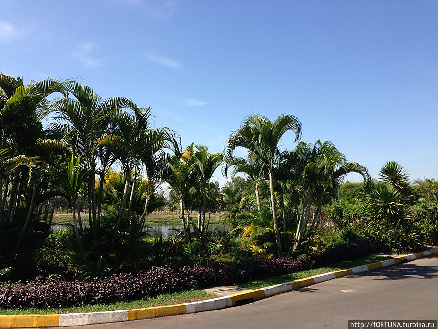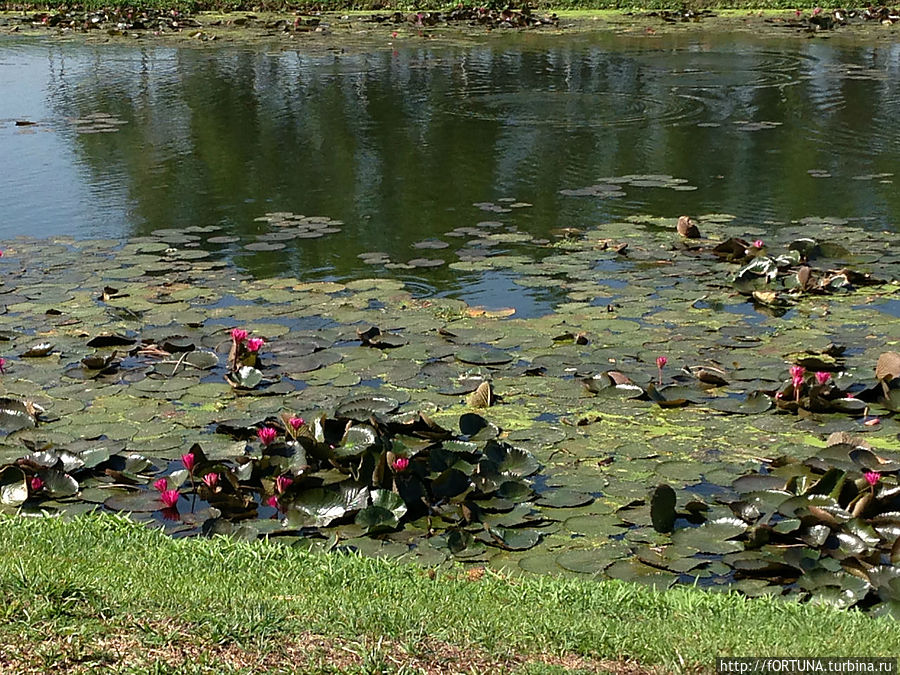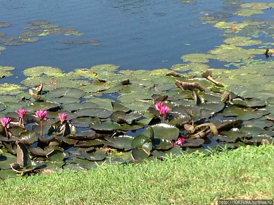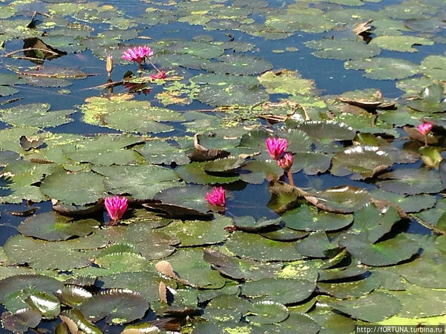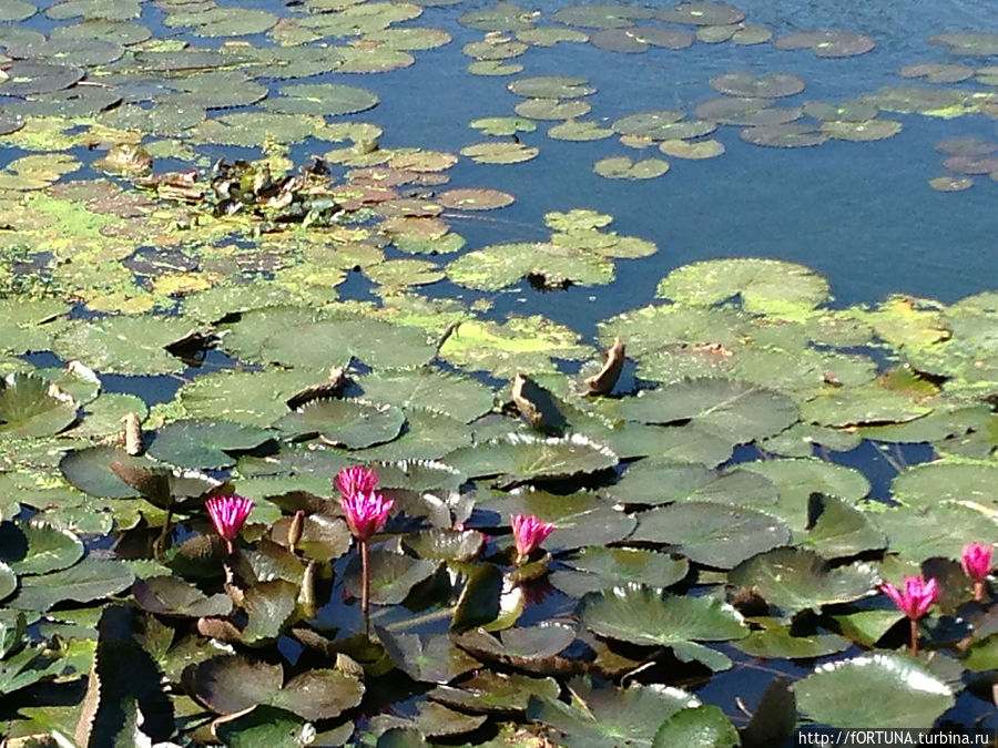 Вокруг здания аэропорта-большой водоем весь покрытый зеленью и ярко-розовыми лилиями.