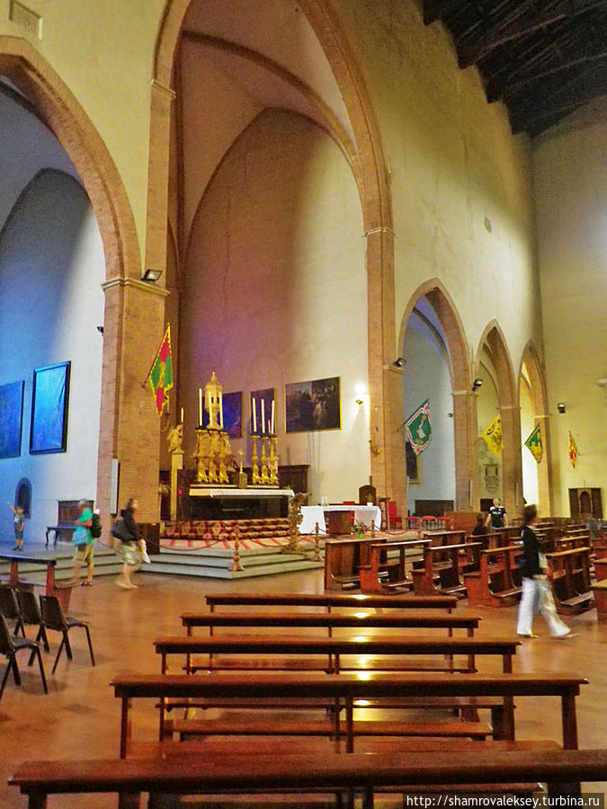 Сиенской крепости. Его внутреннее пространство перекрыто деревянными фермами. Априори в храме снимать запрещено, но если не пользоваться вспышкой и убрать звук затвора, то смотрители не будут обращать на тебя никакого внимания.