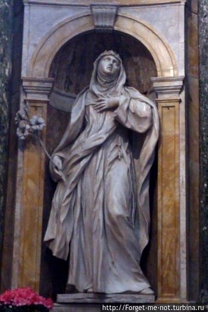 Возле Сан-Доменико чисто и пусто. На двери бумажка: «Пожалуйста, вход только для молитвы». Идет служба, народу мало совсем, но зайти я лично не решилась. Там говорят, от святой Катерины хранится голова и палец. И что такого особенного? Мы вон, на следующий день в музее полный зал всяких священных останков обнаружили. Странный контраст – драгоценные реликварии тонкой работы и полуистлевшие куски плоти…