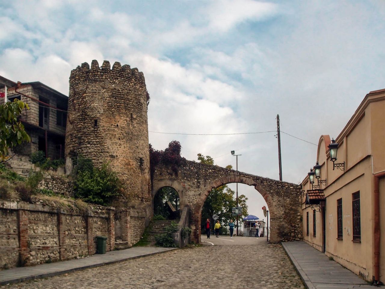 Бодбийского монастыря, который мы посетили в первой половине дня, расположен кахетинский городок Сигнахи. Ехать до него всего пару километров по красивой дороге, окружённой лесом, а затем небольшой съезд к городу, и ещё около километра.