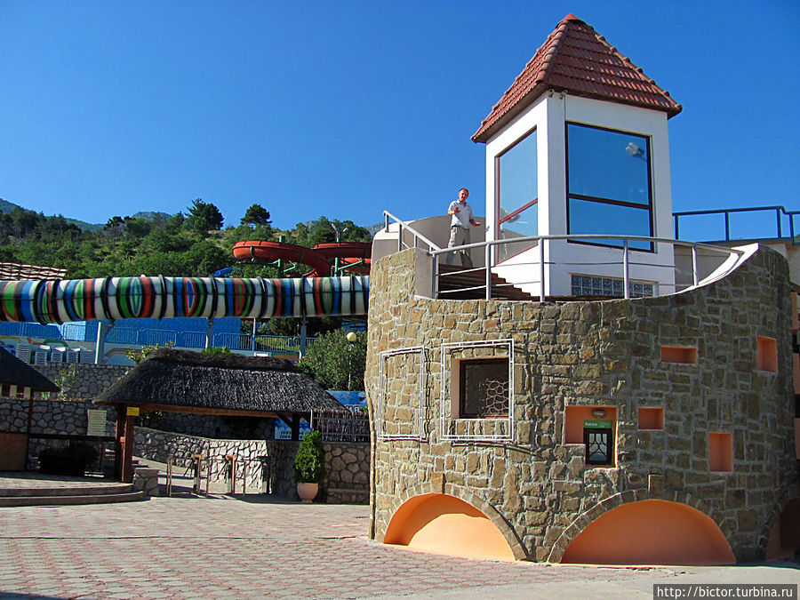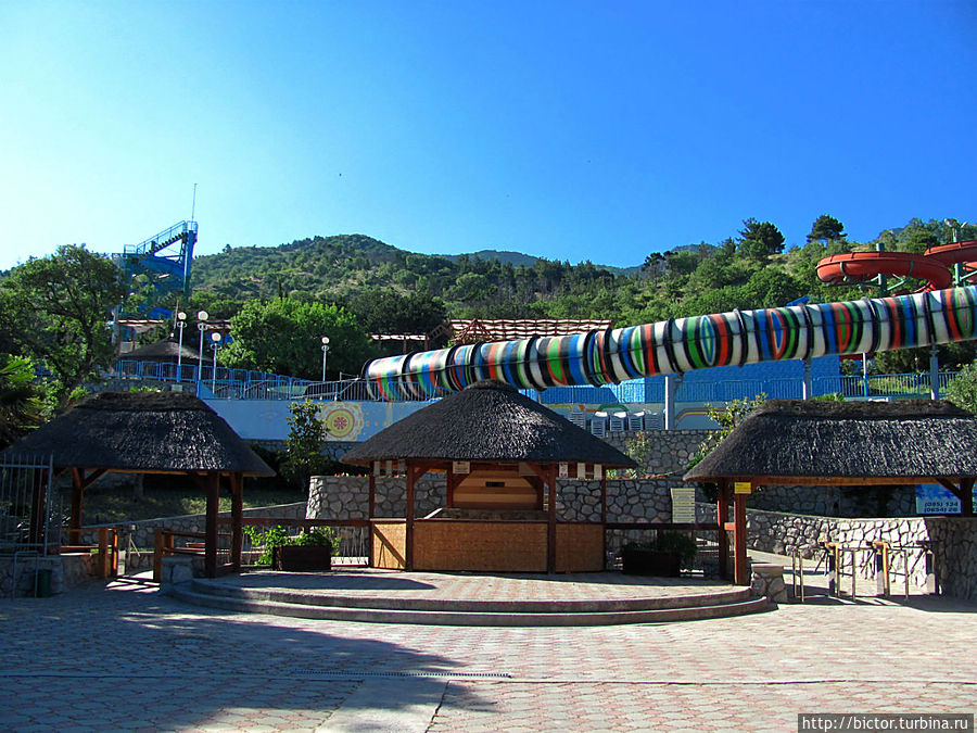 В мая, покидая нашу турбазу, хотелось продолжения банкета. Решили заехать в Симеиз и заодно полюбоваться на единственный в Украине аквапарк с морской водой. Тот, оказывается открывается только 8 июня. Но выглядел довольно привлекательно. В ежедневнике сделали отметку о необходимости его посещениия.