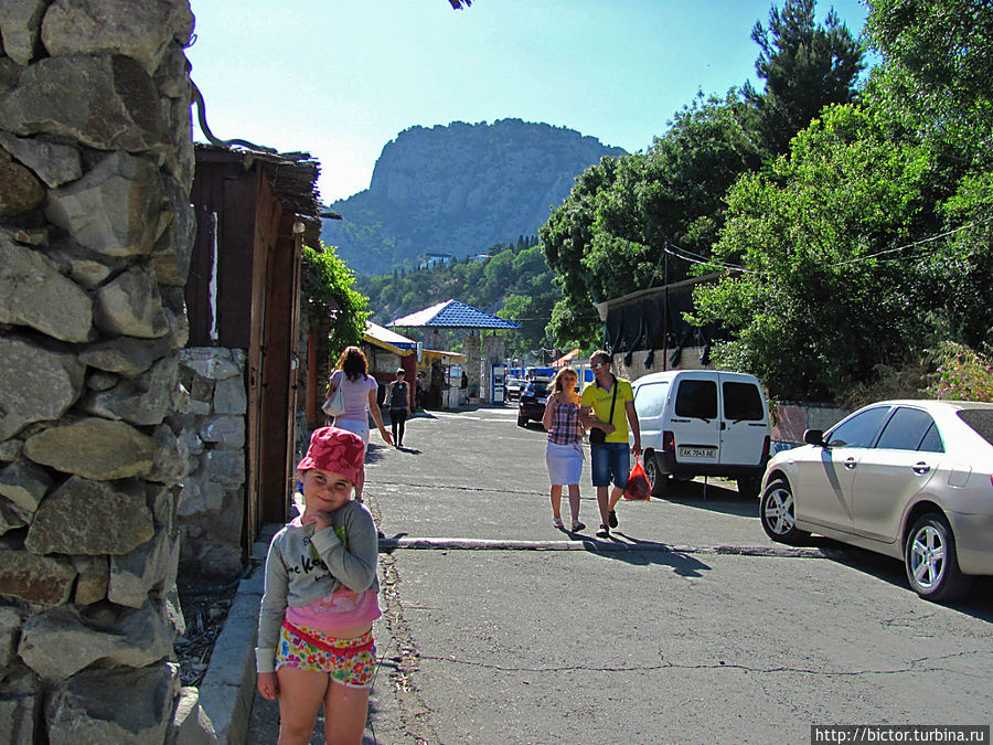 В Симеиз решили заехать прямо со стороны Алупки. Благо решили сориентироваться на местности у местных. Те и сказали, что при въезде в городок доблестными ГАИшниками водружен знак с табличкой, что мол до 23.00 въезжать сюда нечего. Чтобы, так сказать, разгрузить город от машин. Пришлось искать другие пути. Можно было заехать со стороны поселков Кацивели или Понизовка, но мы заметили мощеную тропинку прямо за горой Кошка.