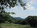 Когда дорога пошла на "ЮВ", решила идти по тропе на запад. Тропа исчезла, и уже по азимуту через ущелье выбралась на тропу, которая вышла перпендикулярно дороге, которая шла "СВ — ЮЗ". Выбрала направление "ЮЗ" и вперед. Погода замечательная, солнце светит, птички чирикают, дорога прекрасная. Но дорога пошла на "Ю", а это значит я буду обходить г. Кошка с юга. Обход приличный, но зато увижу все склоны г. Кошки. Дорога идет на спуск, ну и, соответственно, затем подъем. И вот появилась Кошка не Кошка, но вроде похоже.