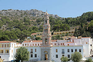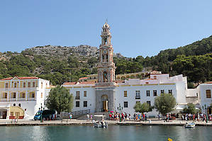 Практически всё население сосредоточено в одноимённом городке на севере острова, возникшем возле средневекового византийского укрепления. На острове большое количество монастырей и часовен (около 200). Наиболее известный из них — монастырь Панормитис, посвящённый Св.Михаилу, расположенный на южном побережье острова.