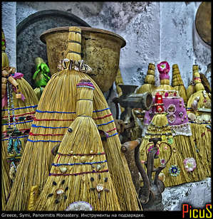 Даже начиная смотреть информацию в нете и книгах — получаешь зачастую противоположные сведения — а чтобы их проверить, надо пару лет прожить в данном месте... А мы всего лишь на денёк на пароме с Родоса сюда приплыли (паром делает 2 остановки)... Сам монастырь маленький, зато вокруг — обширный комплекс монастырских гостиниц (что у нас зовутся странноприимными домами)...