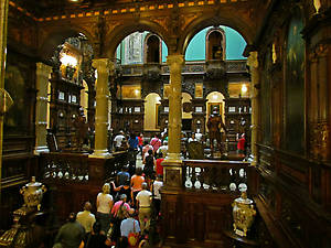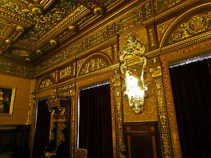 Для посещение королевского дворца Пелеш румыны предлагают три вариата, собственно по числу этажей. Сам дворец построен весьма традиционно, для любого не одноэтажного частного дома. Первый этаж — официальный гостевой. Второй — личные комнаты хозяев: спальни, гардеробные, кабинеты и т.д. Третий, когда он есть, комнаты детей и, в нашем случае, художественный салон.