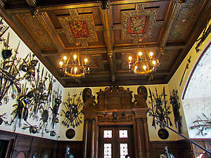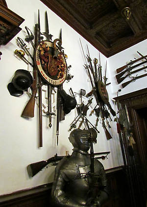 Румынский дворец Пелеш безупречно красив снаружи и по-богатому изящно красив внутри. Особое мести во внутринней части дворца занимает оружейная комната. Кроме богатой колекции холодного оружия различных эпох и регионов, сама комната оформлена с безупречным вкусом.