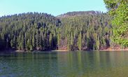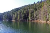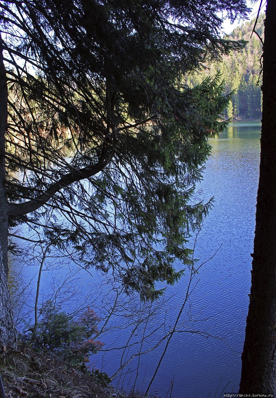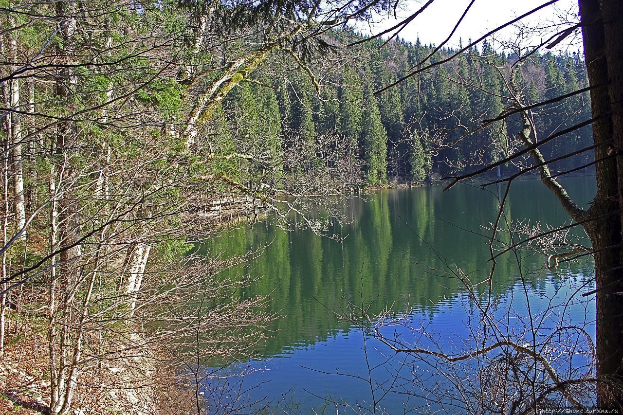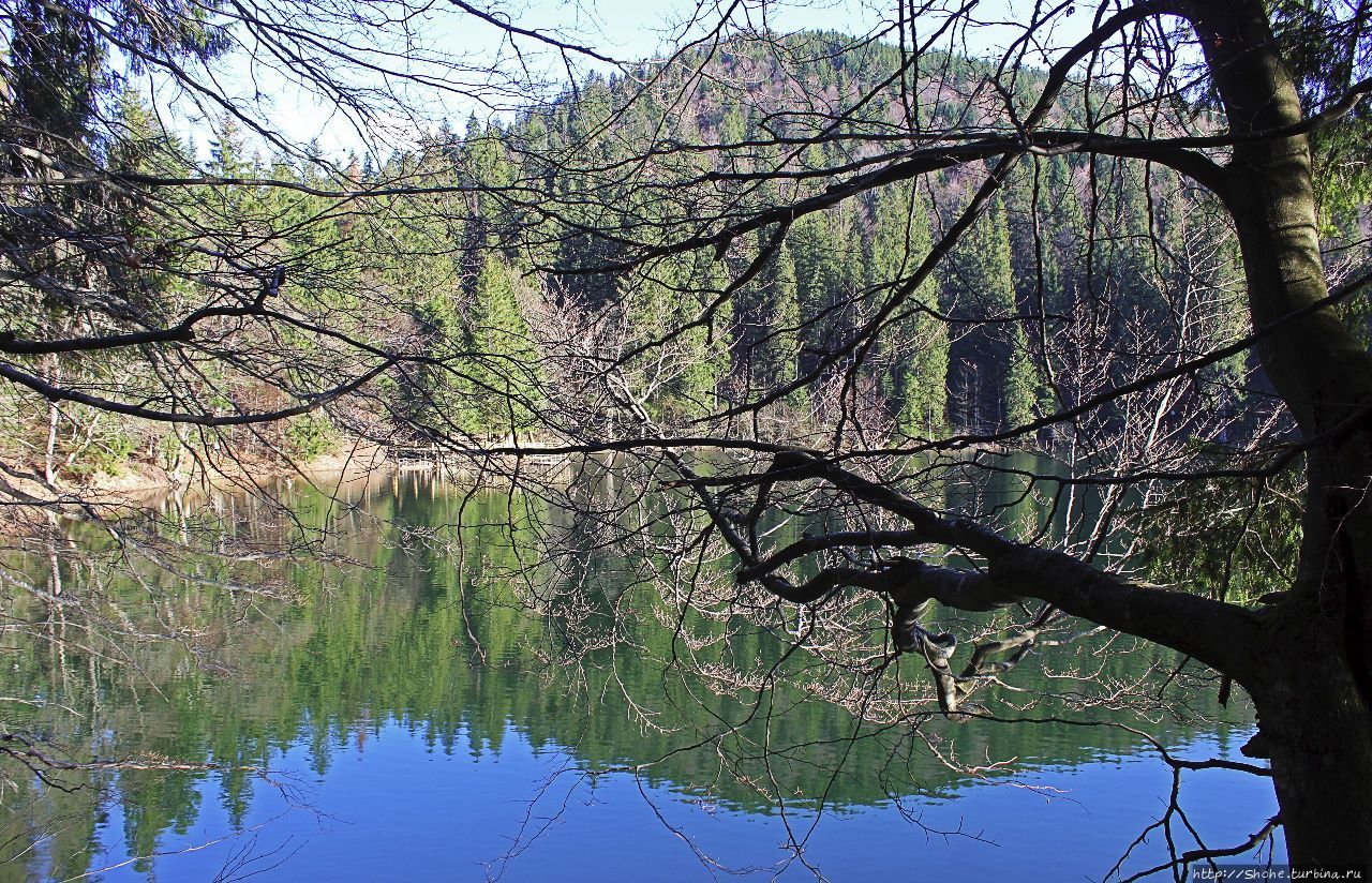 Так мы попали на восточный берег Синевира. Здесь реально деревья произрастают гуще, чем на противоположном. Потому мы не заметили здесь пешеходной тропы.