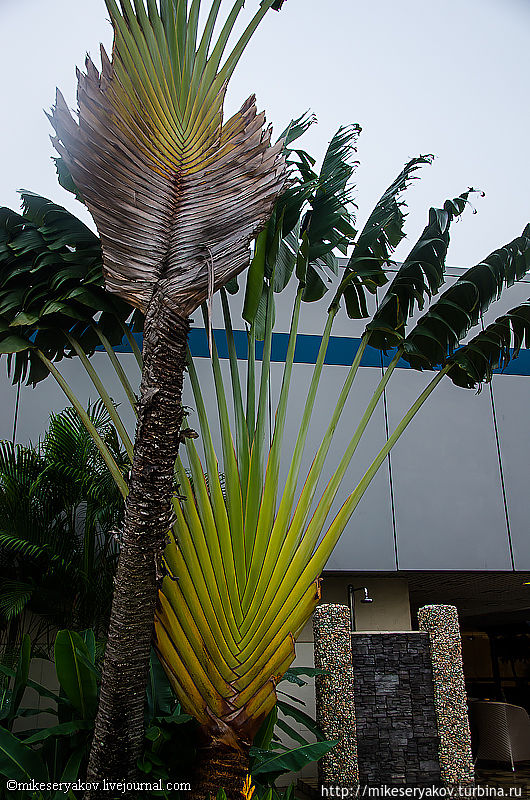 Транзитный отель «Аmbassador” находится прямо рядом с бассейном, где как памятник растёт пальма путешественника Равенала , которая очень распространена на
