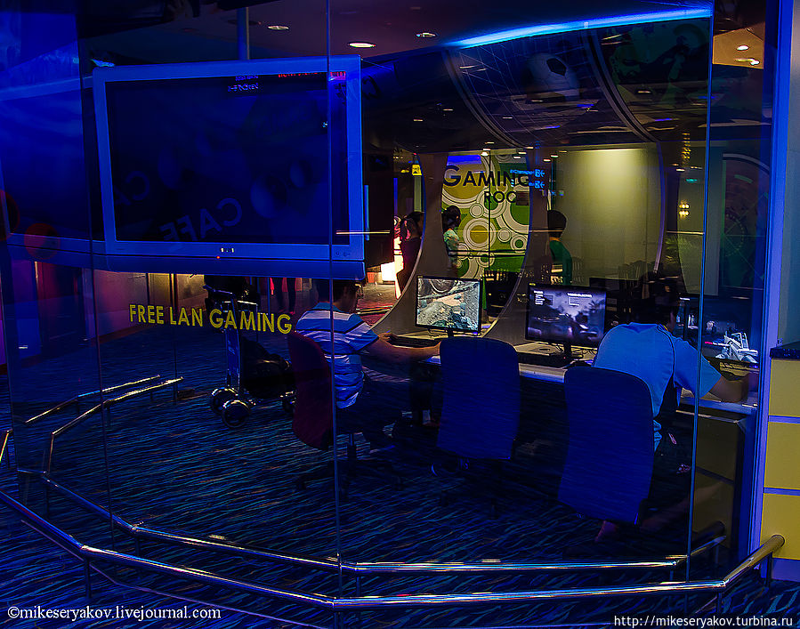 Есть тут и зал для «сетевых контрстрайкеров», так что кто любит это дело, может "пострелять свое удовольствие".