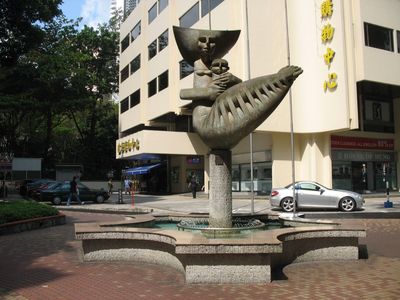 Небольшой фонтан (как цветок) находится посредине круглой площадки, залитой водой. К фонтану проложено несколько дорожек, чтобы можно было совершить круг почета вокруг него по малому кругу. Обходим и мы, опустив монетку сингапурского 8-гранного доллара в барашки фонтанной воды. Обходим три раза по часовой стрелке, загадывая желание.