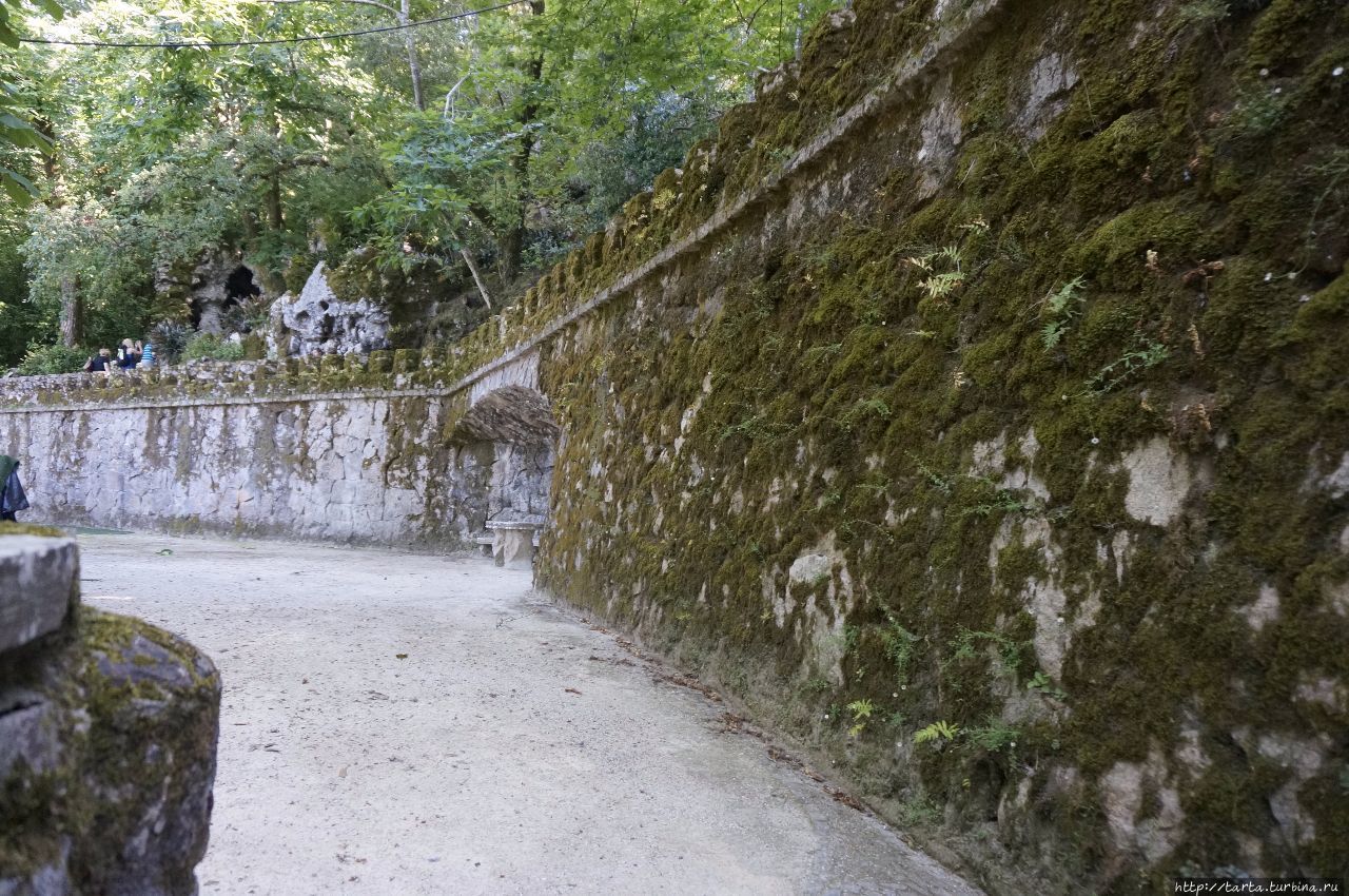 Справа от часовни (как выяснилось позже, а потому, не заметив, мы в него и не попали) потайной вход к винтовой лестнице, ступени которой уносят в недра земли к верхнему ярусу Колодца посвящения. Спираль галереи уходит вниз на 30-метровую глубину. В её чреве 9 уровней символизируют 9 кругов ада, чистилище и рай. На дне знак искупления — крест тамплиеров, вписанный в 8-конечную звезду — герб Монтейру, а на стене – «сияющий треугольник» (один из символов масонства). Перед посвящением в масоны каждый испытуемый, вероятно, должен был пройти по пути перерождения, самопознания и очищения, и, отринув невежество, выйти просветленным. Оказывается, что все подземные ходы в парке – это что-то вроде пути из преисподней в мир света, блуждания в подсознании к познанию собственной души. Когда и зачем это сделано точно неизвестно. Как, впрочем, и то, был ли Карвалью Монтейру масоном или членом какого-то другого тайного ордена. Тайна сия и ныне покрыта мраком.
