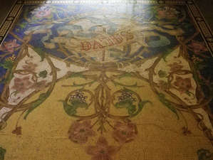 Первое помещение в которое я попал во дворце — великолепная столовая с белоснежным резным камином. Больше века прошло с момента создания мозаичного пола столовой, но и сейчас он покорил меня яркими красками и художественным качеством рисунка. Готический свод столовой обрамлен каменными канатами символом архитектурного стиля мануэлино, на карнизе в основании свода расположены изящные скульптуры сцен охоты.