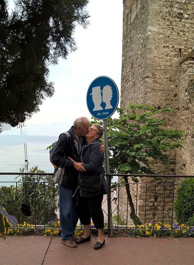 Вдоль береговой полосы идёт пешеходная дорожка, на которой можно встретить много неожиданного, как, например, такой вот вот знак, призывающий остановиться и поцеловаться, что и сделала вот эта пожилая пара, что было особенно трогательно.